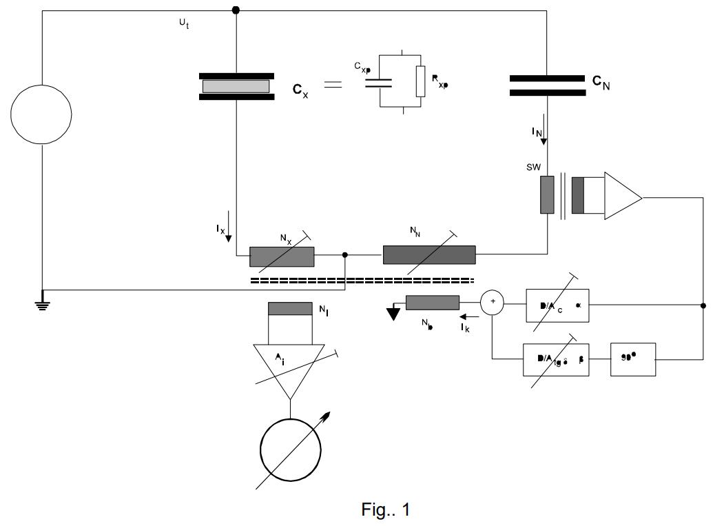 測量儀器將測試對象CX(未知電容器)的電流與所謂標(biāo)準(zhǔn)電容器CN的電流進行比較