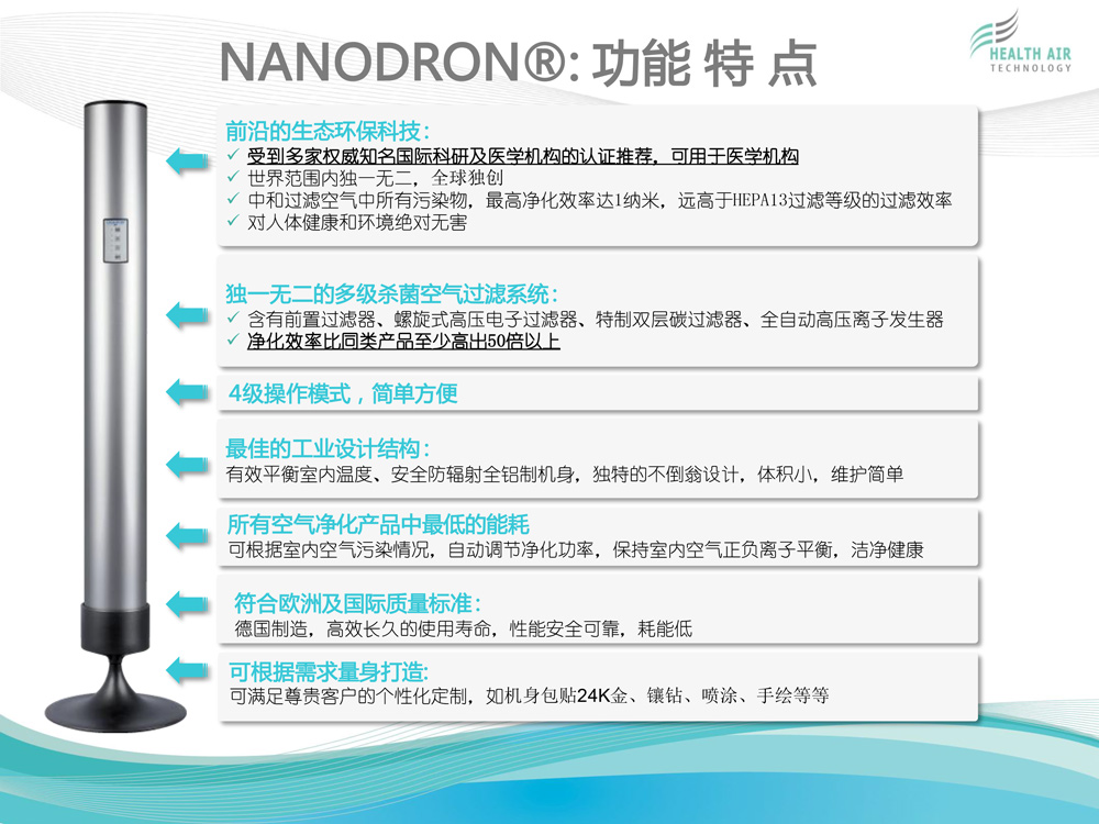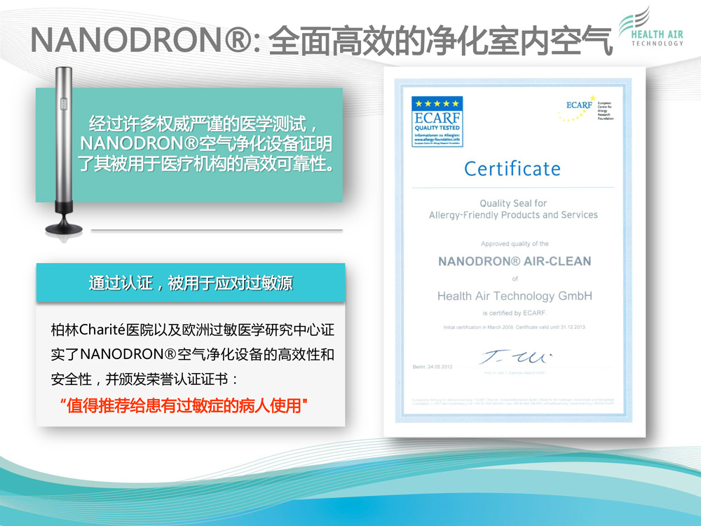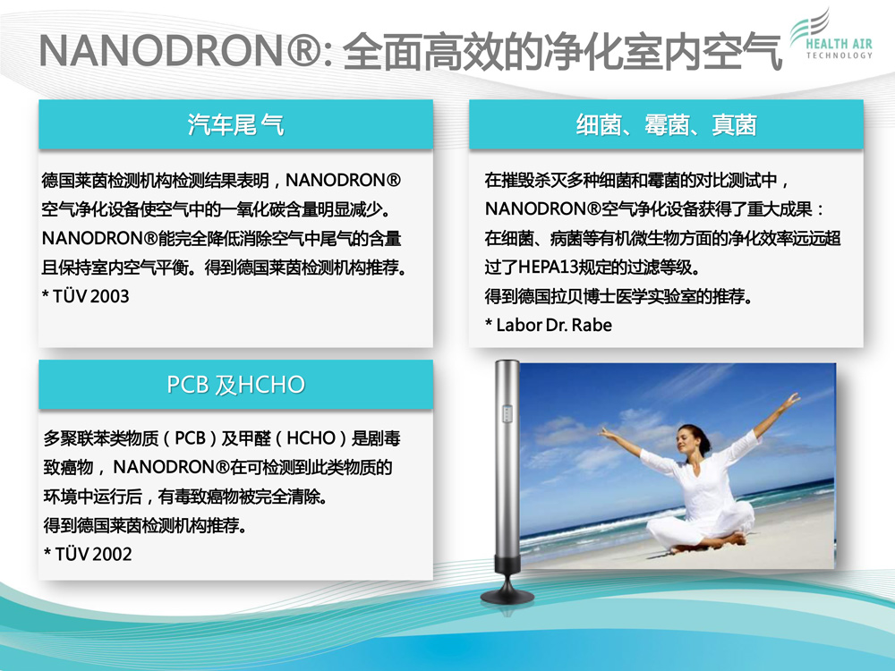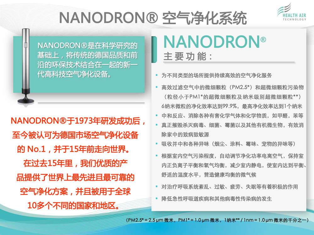 HEALTH AIR TECHNOLOGY GmbH(健康空氣技術(shù)有限公司)致力于獨(dú)特的高科技空氣凈化系統(tǒng)NANODRON?的開發(fā)、生產(chǎn)和銷售。 公司總部及研發(fā)與生產(chǎn)部門位于德國普福爾茨海姆。過去12年來,為了保證在全球范圍內(nèi)維持公司特有的質(zhì)量標(biāo)準(zhǔn)與技術(shù)規(guī)格,我們建立了一個銷售...[查看更多]