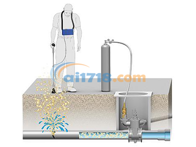 通過(guò)消火栓、鉆孔或流量計(jì)將示蹤氣體(H2N2)引入管道