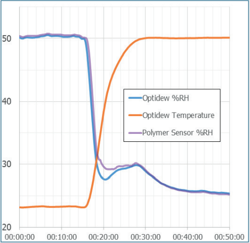 在氣候試驗(yàn)箱測量時,Optidew能夠直接跟蹤溫度和濕度的變化,不用像傳統(tǒng)的冷鏡儀表那樣耗時。