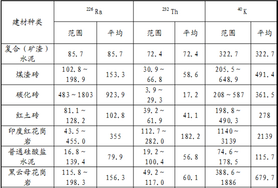 二、建筑材料產(chǎn)生的氡由于建筑材料中含有一定量的鈾、鐳,其衰變生成的氡可以進(jìn)入室內(nèi)。當(dāng)建筑物使用了鈾、鐳等放射性元素含量較高的建筑材料時,這些建筑材料對室內(nèi)氡的貢獻(xiàn)很大。20世紀(jì)80年代以前我國居民住宅建筑材料主要是水泥和粘土磚,鈾含量和鐳含量較低,對室內(nèi)氡的貢獻(xiàn)處于正常平均水平。20世紀(jì)90年代以后粘土磚使用逐漸減少,取而代之的是粉煤灰砌塊磚。而粉煤灰磚發(fā)泡多孔,孔隙度超過60%,氡的析出率很高。此外,裝修用的石材板和瓷磚大量應(yīng)用,又增加室內(nèi)氡的來源。因此,建材的選擇對室內(nèi)氡濃度有著重要的影響。以下是我國常用建材放射性核素比活度水平:(表2)
