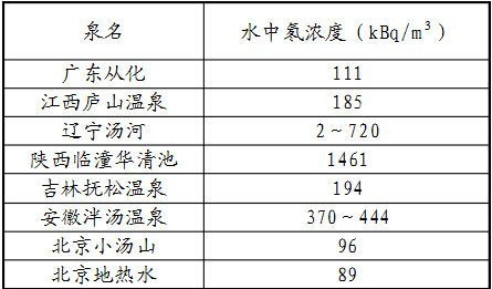 四、生活用水中的氡易溶于水,其半衰期很短,可以從水中迅速衰變逸出。因此地表水中氡含量較低,基本上不存在因水而來的氡問題。城市中在對水進(jìn)行處理時,會將水暴露于空氣中,使氡可以逸出,因此也不會帶來大的氡污染。然而在以地下水作為直接用水來源的地區(qū)(以農(nóng)村為主),則可能因為供水系統(tǒng)封閉導(dǎo)致氡不能及時逸出,而通過淋浴或其他家庭活動釋放出來,增加室內(nèi)氡濃度,甚至對室內(nèi)氡污染起到支配作用。值得一提的是,溫泉和地?zé)崴紒碜缘叵律畈?,氡含量較高。(表3) 表3溫泉和地?zé)崴械碾睗舛取?/span>