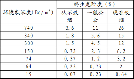 表4 氡及其子體致肺癌的終生危險度