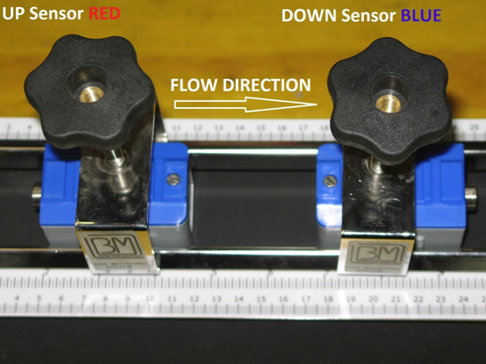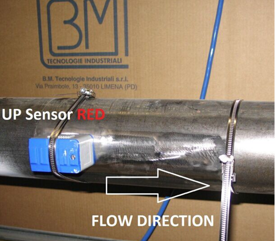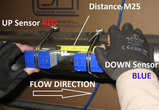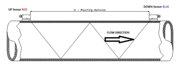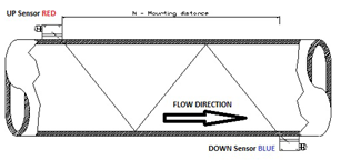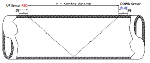 儀器將會在MENU25中顯示傳感器的安裝距離,此時(shí),便可以開始安裝傳感器了,安裝前應(yīng)該在管壁上涂抹耦合劑,否則傳感器與管壁會接觸不良。